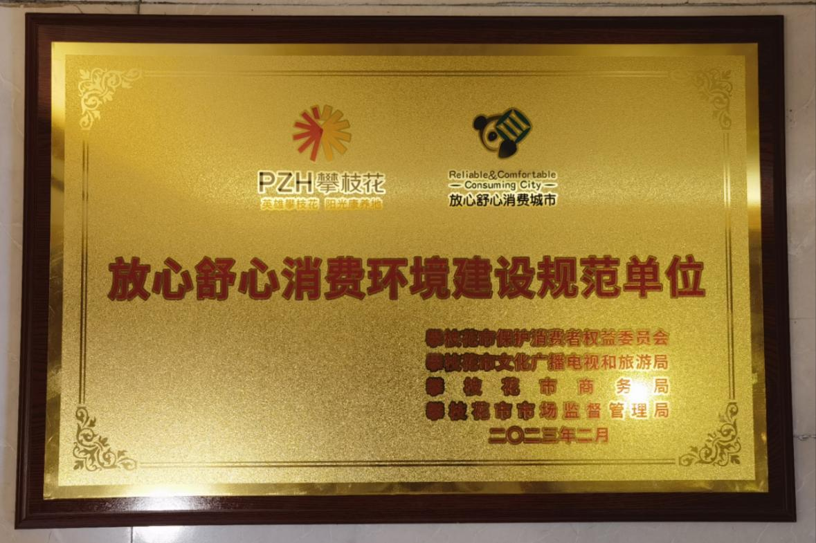 2023年2月,攀枝花宾馆被评为“放心舒心消费环境建设规范单位”
