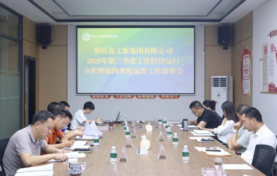 2025年10月11日,攀枝花文旅集团有限公司召开2025年第三季度经济运行分析暨第四季度运营工作部署会。全面总结第三季度生产经营情况,深入分析存在的问题与面临的形势,研究部署第四季度重点工作,动员集团上下统一思想、坚定信心,全力以赴冲刺年度目标。集团党委副书记、总经理毛巍俨主持会议,集团党委书记、董事陈曦参加会议并讲话。集团领导班子成员、集团所属企业班子成员及部门负责人参加会议。